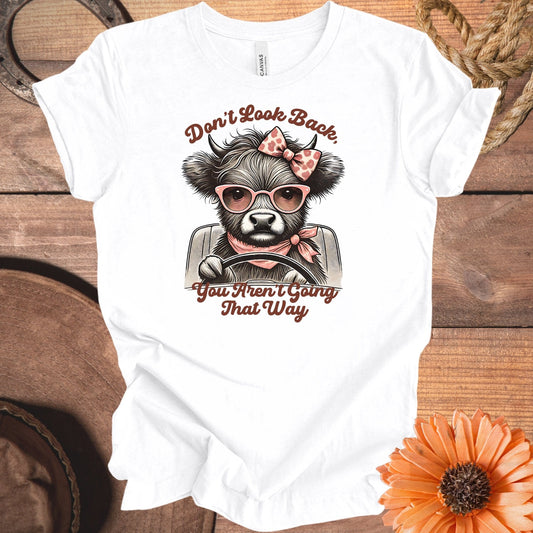 Don't Look Back, You Aren't Going That Way Cow Tee