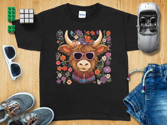 -30% OFFSpring Floral Highland Cow Youth Tee
