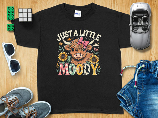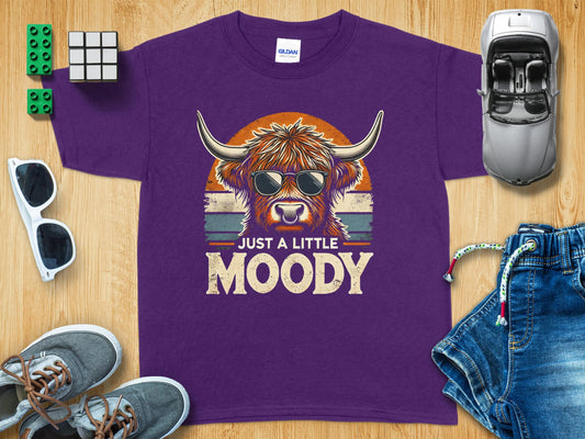 Just a Little Moody Highland Cow Graphic Youth Tee