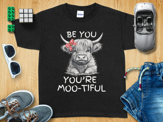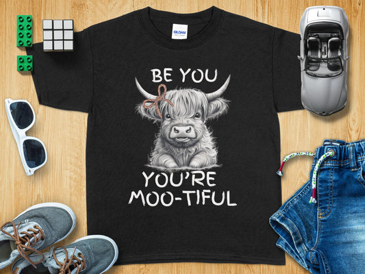 Be You, You're Moo-Tiful Highland Cow Youth Tee
