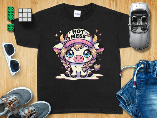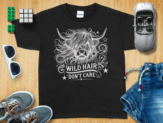 Wild Hair Don't Care Cow Graphic Youth Tee