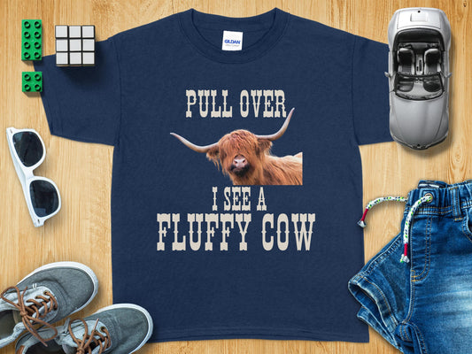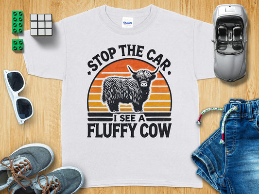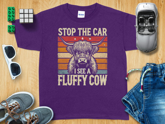 Stop The Car I See A Fluffy Cow Vintage Highland Cow Youth Tee