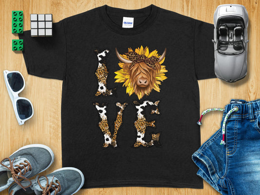 Highland Cow Love Leopard Print Graphic Youth Tee