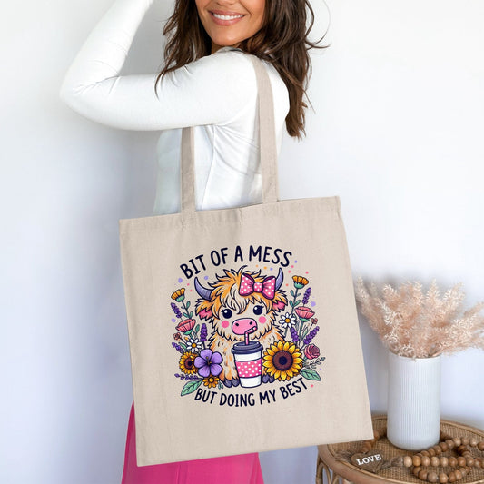 Bit of a Mess But Doing My Best Highland Cow Tote