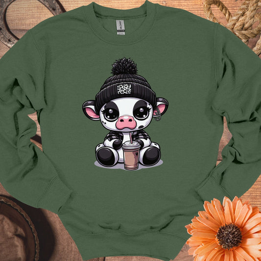 -25% OFFBeanie Cow Drinking Coffee Crewneck