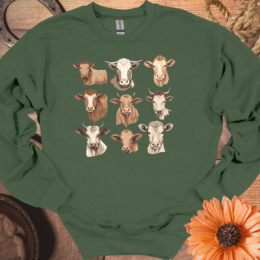 -25% OFFCute Cartoon Cow Faces Crewneck