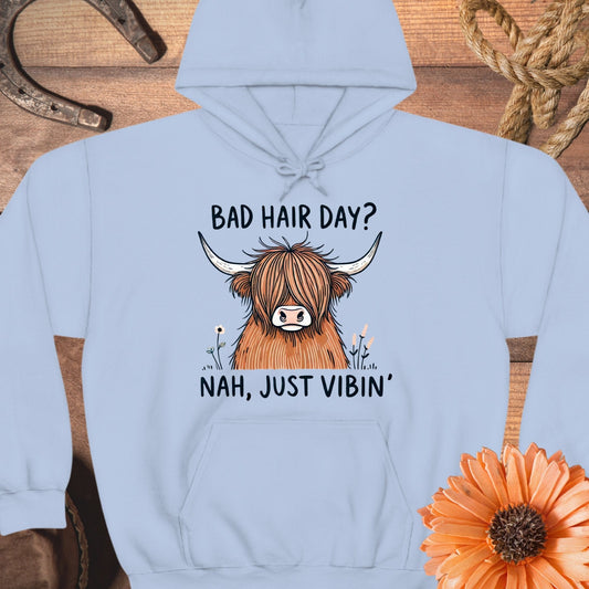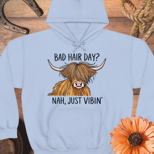 Bad Hair Day, Nah Just Vibin Highland Cow Hoodie