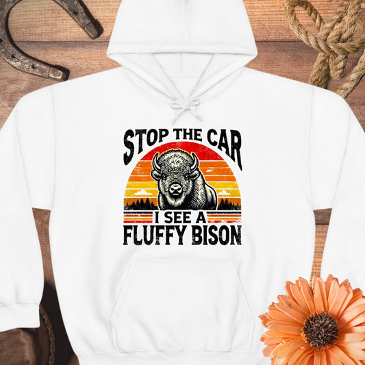 Stop the Car I See a Fluffy Bison Retro Hoodie