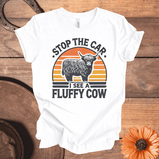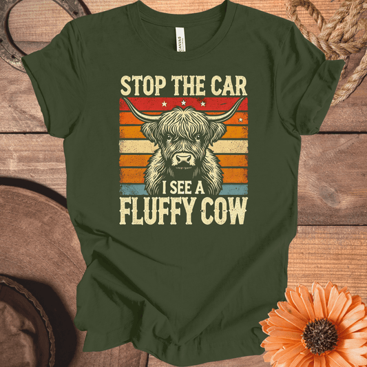 Stop The Car I See A Fluffy Cow" Vintage Highland Cow T-Shirt