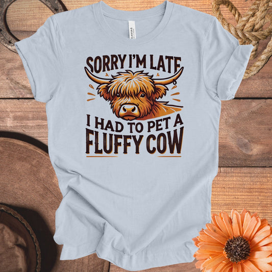 Sorry I'm Late I Had To Pet A Fluffy Cow T-Shirt