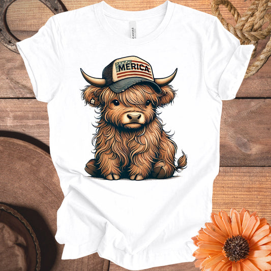 Red White & MOO Patriotic Highland Cow T-Shirt