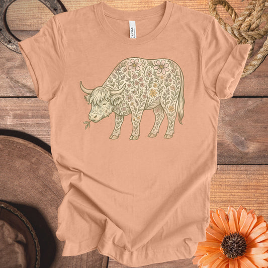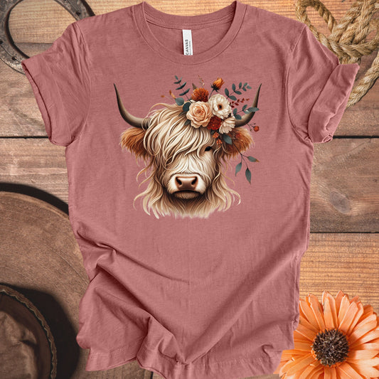 Filled With Flowers Highland Cow T-Shirt