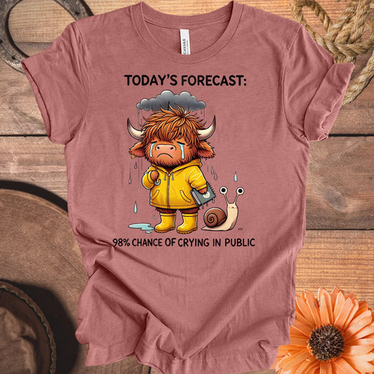 Today's Forecast 98% Chance Of Crying In Public Highland Cow T-Shirt
