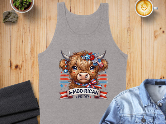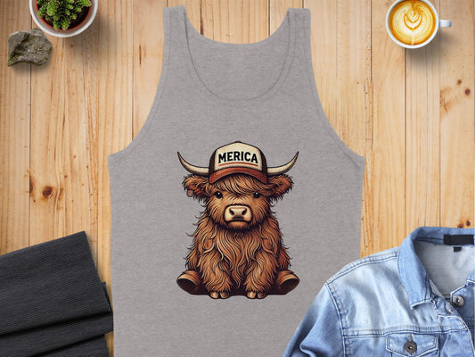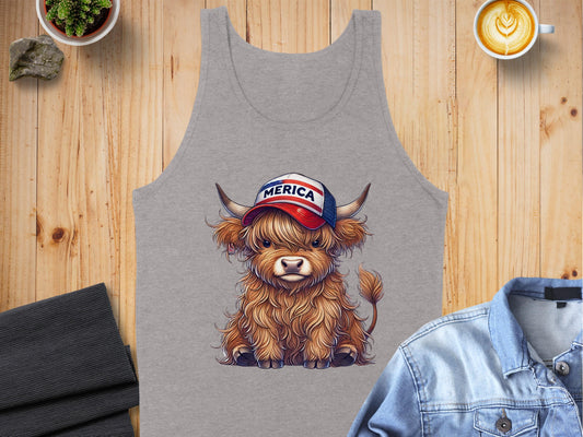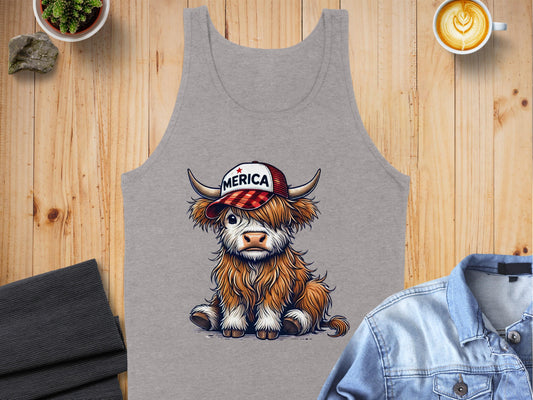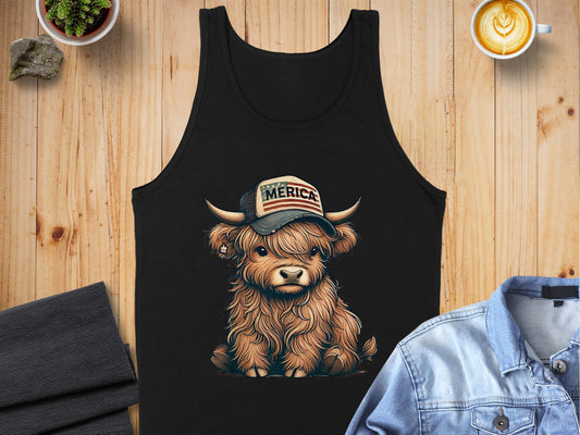 Vintage Merica Patriotic Highland Cow Tank