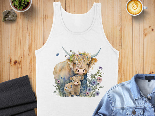 -30% OFFMama & Calf Highland Cow Floral Tank