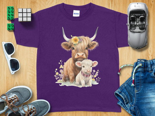 Garden Highland Cow And Calf Youth Tee